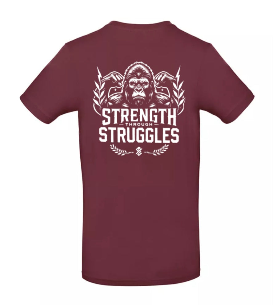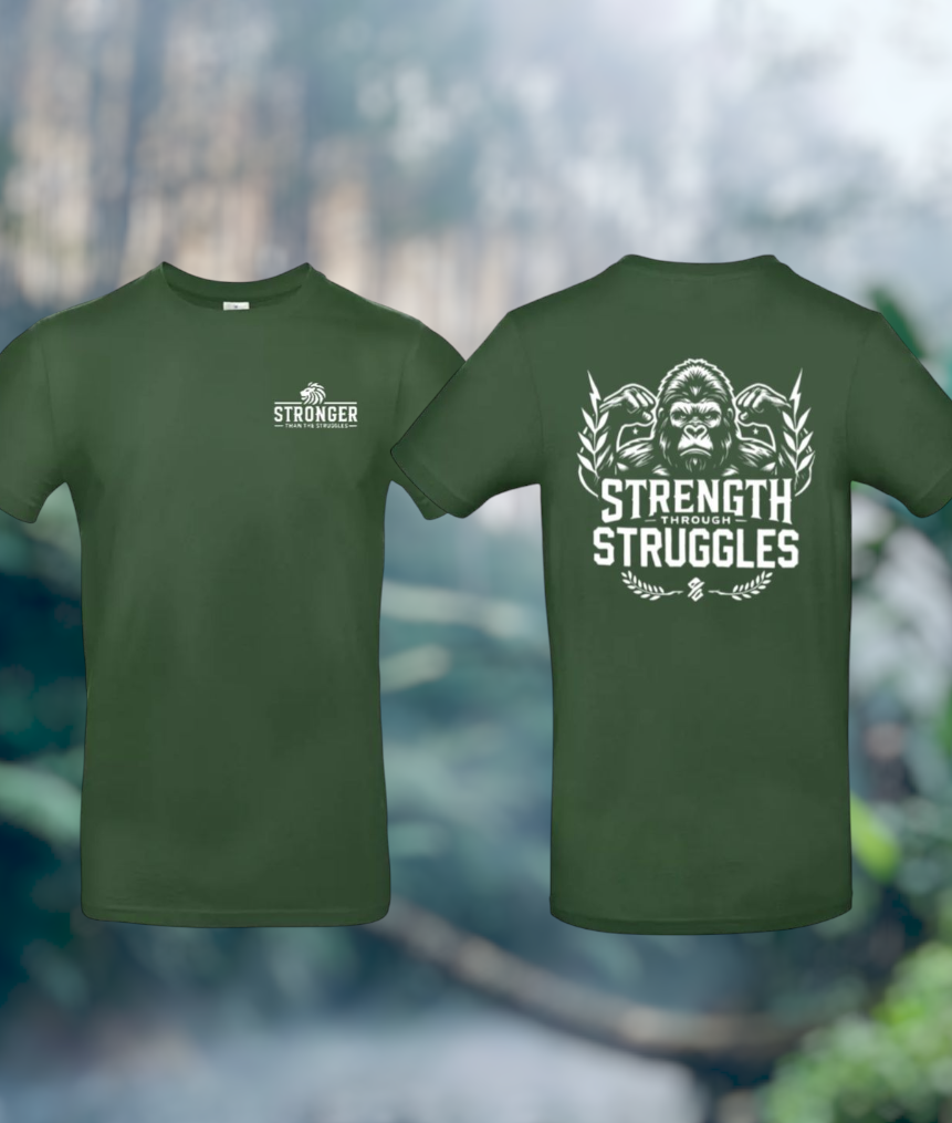 Deze t-shirt is meer dan alleen een kledingstuk – het is een statement. De krachtige gorilla op je rug staat symbool voor doorzettingsvermogen en kracht, ongeacht de obstakels. Met de tekst Strength Through Struggles herinner je jezelf en anderen eraan dat elke uitdaging je sterker maakt.