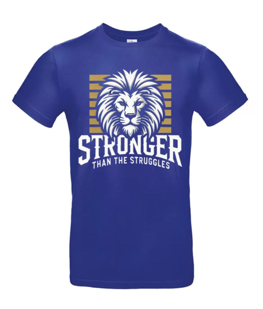 Stap in je kracht met het Stronger Heren T-Shirt. De majestueuze leeuw, gecombineerd met de inspirerende boodschap "Stronger Than The Struggles", herinnert je eraan dat jij elke uitdaging aankan. Gemaakt van hoogwaardig katoen voor ultiem comfort en een perfecte pasvorm.